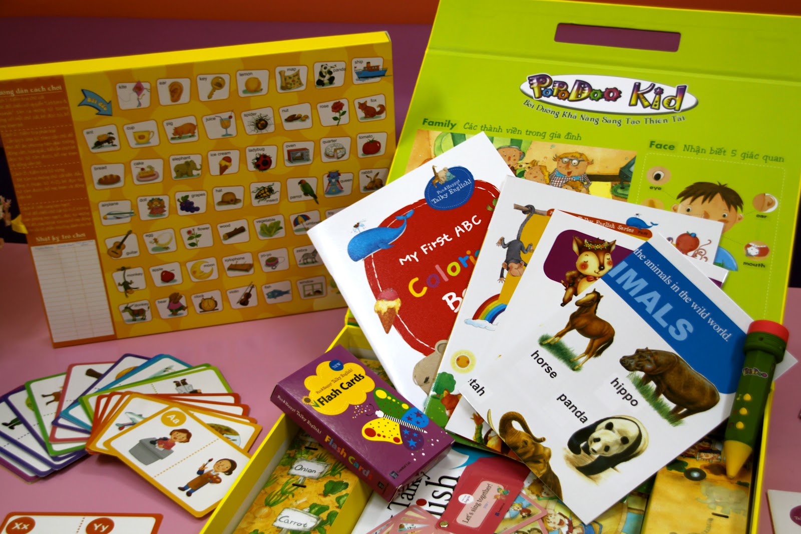 Với PoPoDoo kid các bé cùng lúc được học cả 3 thứ tiếng: Anh, Việt,Trung với giọng bản địa chuẩn. Hệ thống giáo trình bao gồm: Sách học từ vựng, sách tô màu, sách truyện, sách bài hát bỏ túi, bộ trò chơi, poster hình ảnh, thẻ từ vựng, …